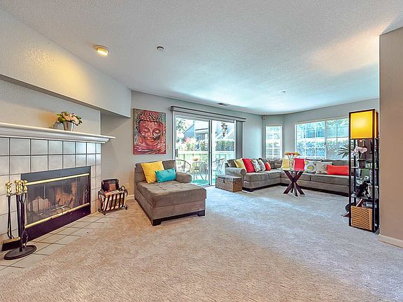 This light-filled condo occupies 2 stories in the Jackson & Santa Clara neighborhood of Hayward, heart of the city's cultural hub & prime spot for transportation close to Silicon Valley, FB, Tesla, effortless commuting via Bart & car easy access to major freeways 880 & 92. Gorgeous kitchen w. refinish cabinets, 1 yr old stainless kitchen appliances w. dining area, new recessed LED lighting for energy efficiency on kitchen and hallway. Great natural light, fireplace in living room, glass sliding doors to back patio. Beautifully renovated hall bath and master bath. All Dual pane windows, Laminated hardwood floors, new carpet through out, fresh new paint. Master bedroom in lower level. this home is short walk to array of shops, restaurants. Enter from Jackson St to Elmhurst St.