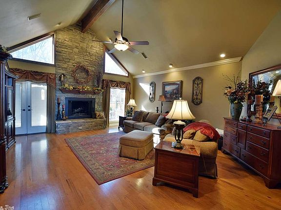 This home has it all! Beautiful stone fireplace in the living room and the master bedroom, Huge kitchen, Granite counter tops, Gas stove top and double ovens, Stained cabinets everywhere with a great island. The master bedroom is awesome and the master bath has a separate shower, and jetted tub. Two more large bedrooms with big closets and a jack and jill bath. Storm room! Walk up attic! The yard backs up to woods. Two car side load garage and a 32x24 shop. This is a must see! Set an appointment today!