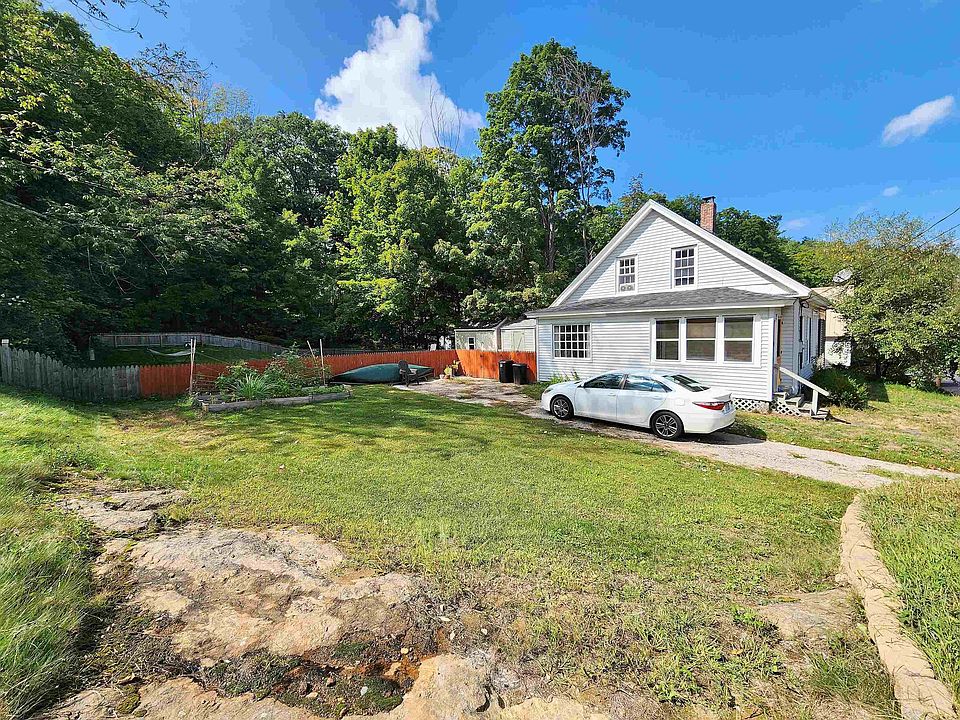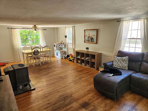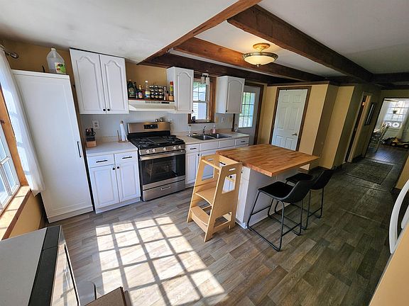 Charming 2+ Bedroom 2 Bath Cape with many recent updates and upgrades.  Originally built in 1841 as the Congregational Parsonage.  Enjoy gleaming wood floors and exposed beams throughout much of this home.  First floor has a remodeled kitchen with island, full bath, laundry room, office or main floor bedroom, and a large combined living and dining space with a cozy pellet stove for alternative heat this winter.  Upstairs has two bedrooms with vaulted ceilings and exposed beams as well as an additional bathroom.  Outside this home benefits from updated architectural roof, replacement windows, and vinyl siding.  Large landscaped in town lot with mature flower beds, garden beds and raspberry bushes.  Walking distance to schools, church, many dining options, and a short drive to town beach with boat launch and park.  Close to Route 125 and Route 16. Plenty of great offerings in Milton including swimming, boating, and fishing on Milton Three Ponds, hiking and biking trails, several local farms and orchards, as well as snowmobile trails and an ice racing series right on the ponds. Chimney flues were professionally redone at the time of pellet stove install.