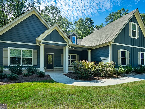 WELCOME HOME to this stunning 4-bedroom, 3-bath ranch/craftsman-style home in the desirable Deer Creek community of Moreland GA. Here, small-town charm blends with peaceful, wooded surroundings, creating the perfect retreat for both relaxation and gathering with family and friends. Tucked away at the end of a quiet cul-de-sac on 3.01 wooded acres, this home offers both privacy and natural beauty. From the moment you arrive, the inviting front porch calls for rocking chairs or a porch swing, an ideal spot to slow down and soak in the setting. Step inside and you'll immediately notice the open, airy flow that connects the foyer, formal dining room, family room and a cozy bonus room. A designer fireplace and a vaulted ceiling anchor the space, creating warmth and ambiance that can be enjoyed from multiple rooms. Sunlight pours in, and French doors invite you outdoors to one of the two covered patios, perfect for extending your living space into the fresh air. The heart of the home is the gourmet kitchen, where shaker-style cabinetry, stainless steel appliances, subway tile backsplash, and a large island with breakfast bar combine both style and function. A generous walk-in pantry ensures plenty of storage, while the open design keeps you connected to the family room and breakfast area. Another set of French doors here leads to a second covered patio, perfect for sipping morning coffee or firing up the grill. Conveniently located near the kitchen, the laundry room and garage entry include space for a future drop zone--ideal for organizing coats, bags, and shoes. Tucked privately on one side of the home, the owner's suite is a true retreat, complete with a spa-like bath featuring a soaking tub, tiled walk-in shower with glass enclosure, dual vanities, linen closet and oversized walk-in closet. On the opposite side, two additional bedrooms share a spacious full bath, creating a functional split-bedroom layout. Upstairs, a private suite with bedroom, full bath and walk-in closet offers flexibility, whether for guests or multi-generational living or a quiet home office. Throughout the home, you'll find thoughtful details like tray and vaulted ceilings, upgraded trim, luxury vinyl and tile flooring, soothing color palette, and Smart Home Technology. Energy efficient features such as foam-insulated attic, Low-E windows, and architectural shingles add peace of mind. Outdoor living is equally inviting, with two covered back patios overlooking a peaceful wooded backyard, an ideal backdrop for quiet evenings, weekend cookouts, or fall football gatherings. A two-car garage with an extra parking pad completes the package. Just minutes from I-85, you'll enjoy easy access to Newnan, Peachtree City, Atlanta, Fayetteville, LaGrange and beyond while still coming home to the peace and privacy of your wooded retreat. Barely lived in and meticulously maintained, this home is ready to welcome its next chapter...YOURS!!