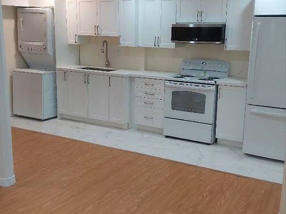 one bedroom basement unit with open concept kitchen with separate entrance and laundry in suite , ready to move in . Access to downtown Toronto via HWY 400. Surrounded with all parks and top rankled schools. All new appliances and new laminate floor . nice modern 3 pc bathroom.