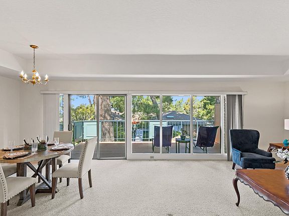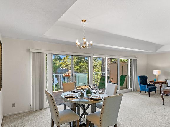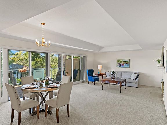 Come enjoy your private mountain top retreat in this spacious, light filled, 2 bedroom 2 bath condo with beautiful mountain views out three sides. This highly desired End A unit has a very private feel. Its large deck off of the living room has a storage / laundry shed and is graced by two large Monterey Pine trees. The peaceful sunset mountain views from the kitchen window will calm your soul. This unit has a lovely lawn space out front and an extra 6 x 15 storage space underneath. Del Mesa Carmel is Carmel's premier 55+ community, complete with Security Gate, beautiful gardens, mountain views, swimming pool, activities and World Class dining.
