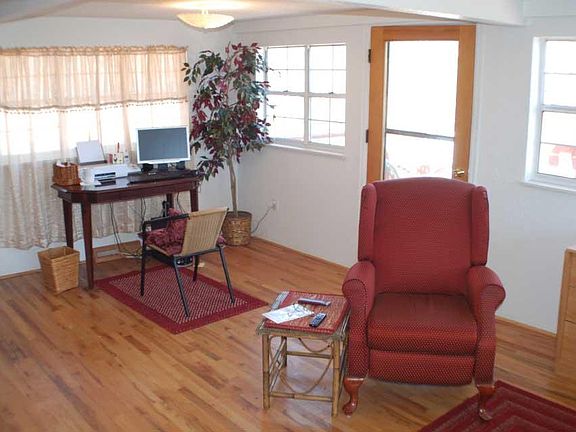 This nice little house is on a quiet street with great views overlooking Manitou Springs, Pikes Peak and Garden of the Gods. The home has 2 convenient off street parking spaces, a large back patio and deck off of the upper level. Multi-level yard has plenty of trees and plants. Washer and dryer on site. House is on 2 levels - enter on the upper level with bedroom and living room and downstairs to spacious kitchen, bathroom and laundry room. Initial 6-month lease can start on April 15th, then month to month. Security Deposit required. Tenant pays utilities.