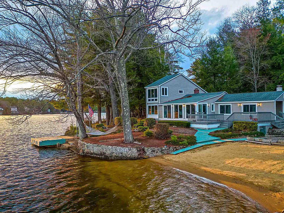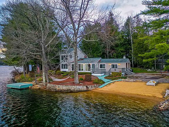Are you looking for a waterfront home with over 200ft of frontage on Lake Winnisquam with an incredible natural sandy beach? If so then this is the property for you! This level lot also has amazing Western exposure and offers all day sun as well as beautiful sunsets! The home is a year round property that has 3 bedrooms and 3 baths! The view from the living room/kitchen is unparalleled! There are 2 bedrooms, a sunroom and den on the first floor and upstairs is the master bedroom with closet and 3/4 bath. There are 3 large decks to enjoy the outdoors as well as crib dock/deck at the water's edge. Lastly there is a detached garage with a cedar closet storage area. This waterfront property checks all the boxes. Delayed showings to start on Saturday May 8th!