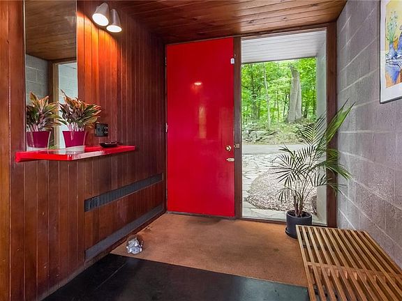 ATTENTION all buyers who love the Mid Century Modern style. This house is must see original. The Purist will love the authentic and preserved elements. The buyer more concerned with functionality and everyday use will love that this house was made for living. The extensive roof, drainage reconstruction were done with care to preserve the original profile (copper gutters are hidden from exterior view.) The restoration of the Tiger Wood and Mahogany decks were done with the highest workmanship. Built by Henry F. Miller for his family in 1948 and listed on the National Register of Historic Places, the home is quintessential Mid Century Modern, one of the first in the area. The 2.72 acre lot has a pond and a stream and backs up to open space. Located within minutes of down town New Haven yet having a lovely country setting - it is the best of both worlds.