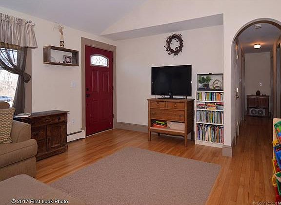 Ranch style home in nice condition. Eat-in kitchen. Hardwood floors throughout. Vaulted ceiling in the living room, arched entryways, nice moldings. Level lot bounded by stonewalls. Woodstove can convey.