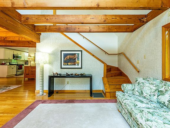 This impeccably maintained hillside residence presents a unique opportunity for a third bedroom option in a tranquil setting, conveniently located just minutes from town, shopping, schools, and essential services. The home boasts a newly renovated kitchen that seamlessly connects to the open dining and living areas adorned with elegant hardwood flooring. The main floor deck is perfect for summer entertainment and stargazing. The primary bedroom includes a newly updated ensuite bathroom with a washer and dryer and a spacious sitting area that can serve as a nursery or media room. A second bedroom and a full bath are conveniently located on the main floor. Above the two-car garage, a naturally lit studio space offers versatility as an additional bedroom or office. The expansive south-facing deck provides an inviting space for morning coffee or leisurely reading. A standout feature of the property is the indoor sauna, enhancing the workout area. The oversized garage includes a dedicated workshop space, and a spacious detached shed offers ample storage for outdoor equipment. Set on three acres of beautifully landscaped grounds preserved primarily in their natural state, this property adjoins the Ragged Mountain Recreation Area providing endless opportunities for year-round outdoor activities such as hiking, skiing, mountain biking, tennis, and water sports on Hosmer Pond. This residence represents an ideal, practical, and private retreat, just minutes from the picturesque harbors of Camden and Rockport.