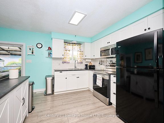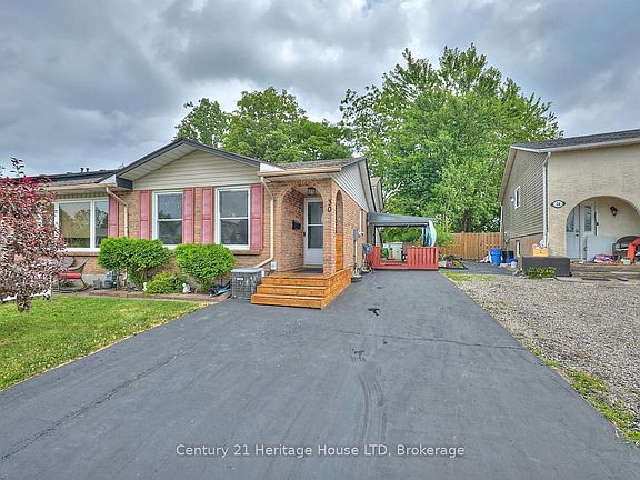 Solid and affordable, this lovingly maintained 3-bedroom, 2-bathroom backsplit showcases true pride of ownership both inside and out. From the pristine interior to the carefully landscaped gardens, this charming home is tucked away on a quiet cul-de-sac and offers over 1,100 sq. ft. of above-grade living space, plus a full unfinished basement with excellent storage and future development potential. The main level features a bright open-concept layout with a kitchen that includes a double sink, a large window, and generous counter space. The kitchen flows into the dining area and living room, where a large front window and updated laminate flooring create an ideal space for daily living and entertaining. Upstairs, you'll find three spacious bedrooms, each with a ceiling fan, closet, and natural light, along with a well-appointed 4-piece bathroom. Durable and clean plank vinyl flooring throughout the main and upper levels including the hallway and bedrooms. The lower level adds versatility with a large L-shaped rec room featuring laminate flooring, a gas fireplace, and daylight windows ideal for a family room, home office, or hobby area. A second 3-piece bathroom on this level enhances functionality. The full basement includes a bright laundry area with a sink and window, plus ample space for storage or a future workshop. Outside, enjoy a private, fully fenced yard lined with mature trees for added shade and privacy. A covered patio and elevated deck create inviting outdoor living areas, perfect for relaxing rain or shine. Lush gardens, vibrant perennials, and two garden sheds complete the property. With a private driveway and a location close to schools, shopping, amenities, the QEW, and the Peace Bridge, this home is a wonderful opportunity for first-time buyers, downsizers, or investors seeking space, comfort, and long-term value.