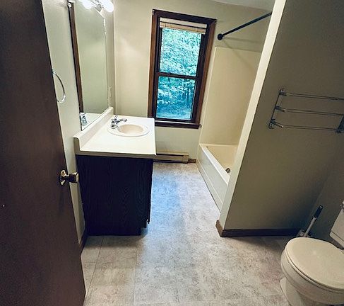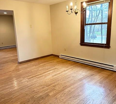 Applications must be submitted online and are necessary prior to viewing the unit. Wooded, tucked away lovely two bedroom end unit townhouse condo. Main level is open concept kitchen, dining area, living room with 1/2 bath, washer/dryer hookups with hardwood flooring. Balcony, off of the living room with a french door allowing much light to come into the space. 2nd floor offers sizable bedrooms with ample closet space and a full bath. Master bedroom gives access to the 3rd floor which can be utilized as a walk-in closet (no pictures included), storage or maybe a small office space, allows for over 200 more sq. ft above the listed living area. Master also includes a french door to the private sitting deck. Landlord is looking for 650+ credit score, and 3x the rent combined monthly income. This condo is non- smoking and rules and regulations will be given to all interested applicants. Tenancy at Will, based on a one year agreement. 2 deeded Parking spaces. Tenant pays electric and water. No smoking.