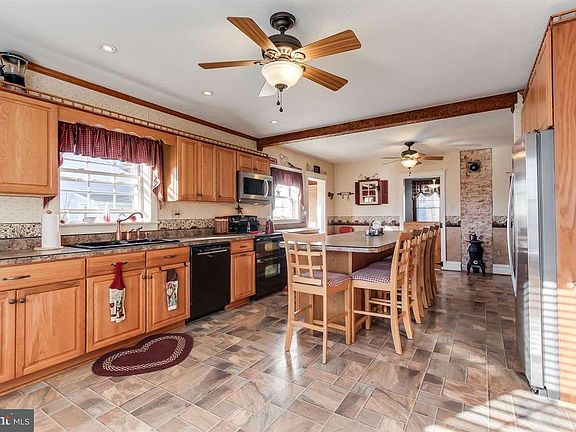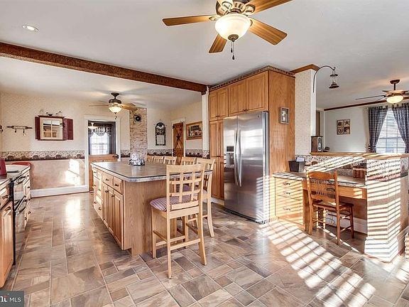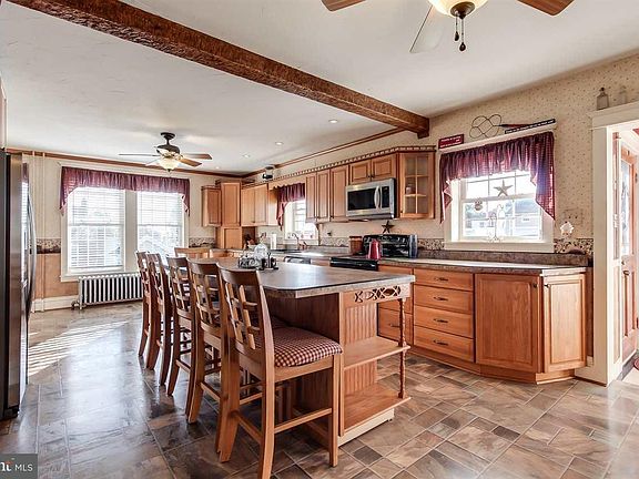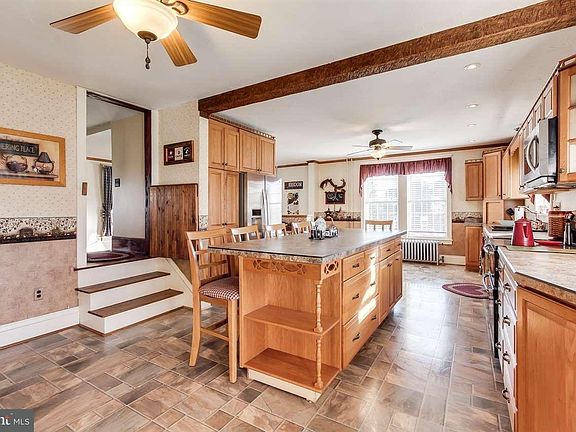 Huge house on large level lot with beautiful pole building...great for working on cars or collecting toys. Rear deck. Large kitchen with huge center island, dining room with built ins, .5 bath on first floor, large double living room, laminate and natural wood floors, wood trim, vinyl windows, hook up for coal stove if you wanted, large master with double closet, cedar walls and barn beam, brand new refrig., loads of storage. A lot of house!!