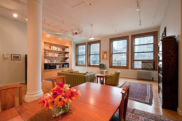 This wonderful Flatiron top floor loft is ideally located between Madison Square and Washington Square, steps from The Ladies Mile District. An entire wall of oversized windows with original wood detailing reveals stunning, open city views and floods the space with sun. A grand living room melts into an excellent chef's kitchen, which includes designer cabinetry and with outside venting. Beautifully appointed built-in closets and shelves provide storage, style and an area for a home office. This home is located in a stately elevator loft building with a video intercom and a marble lobby.