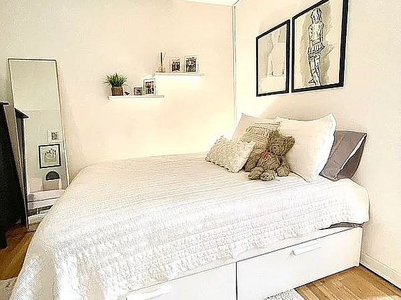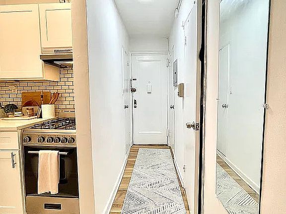 Immaculate North-facing newly renovated studio that consists of stainless-steel appliances, Caesarstone countertops, modern cabinets, a Glass shower door, a tiled bath, refinished hardwood floors, and 2 large closets.