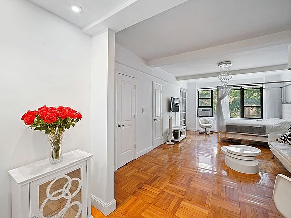 Residence 4E is an oversized condo studio with high-beamed ceilings and a lot of natural light with North exposure is the perfect first home, pied-a-terre or investment property. Located on a tree-lined block between Madison and Park Avenues, this well designed and perfectly proportioned home offers an abundance of space. The studio's main room easily accommodates a living area, a dining area and a sleeping area. The front closet has been expertly converted into a home office with plenty of closet space. The windowed full kitchen features gorgeous granite countertops and modern dark cabinetry. The apartment also features a spacious bathroom with a stall shower and a large walk-in closet.
