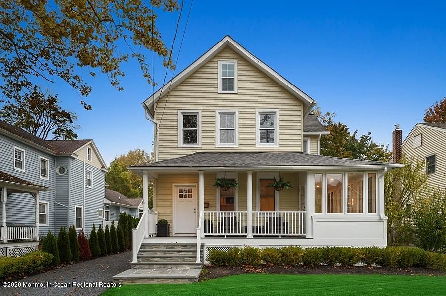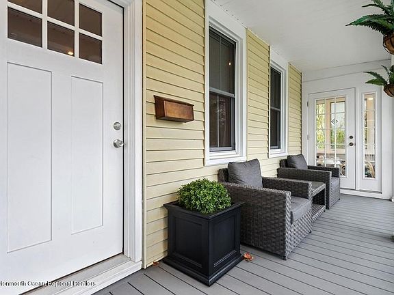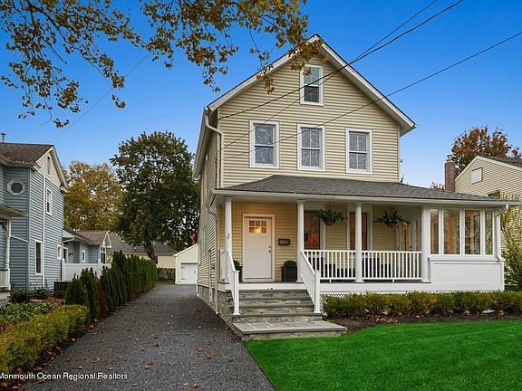 A LIFESTYLE AWAITS! A wonderful blend of style, modern living and accessibility come together in a historic Red Bank setting with this classic 3 bedroom, 2 full bathroom colonial complete with a wrap around porch. Reimagined & fully renovated the first floor offers an open floor plan, with a large family room that has a electric fireplace and leads into the stunning eat in kitchen has white shaker cabinets, quartz counters, apron sink, stainless steel appliances and wine fridge. The office is bright and has a wall of windows. Upstairs there are 3 bedrooms and an updated full bathroom, with master bedroom having legs walk in closet. Beautiful and private outdoor space has trex deck, oversized driveway and two car detached garage. Short distance to downtown, the river, parkway and train!