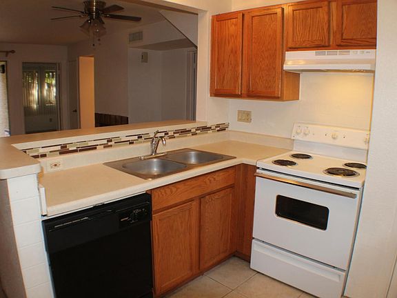 Nice, cool, ALL GROUND-LEVEL 2 bedroom condo. Tile flooring throughout Living area, Kitchen and Bath. Carpeted bedrooms. Private attached garage enters directly into home. Washer in Kitchen pantry included. Dryer in garage (better than heating up inside home) also included.Ramblewood is a gorgeous, proud complex with large pool and lots of grass and benches...truly a lovely community.
