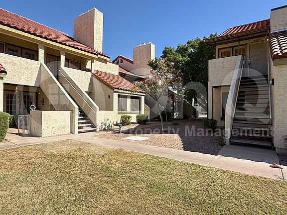 Step inside this 867 SQ FT, 2 bedroom, 1 bath two-story townhome in Mesa's desirable Ramblewood neighborhood, freshly maintained and move-in ready. The charming kitchen features included appliances: stove/oven, refrigerator, dishwasher, and microwave, complemented by functional cabinetry and an efficient layout ideal for everyday cooking. Sunlight fills the inviting living areas, highlighting tile flooring and an open-concept flow perfect for entertaining or relaxing at home. A versatile loft or common area provides extra space for a home office or playroom. The primary suite boasts a walk-in closet and ample natural light, while the secondary bedroom is comfortably sized with generous storage. Laundry is convenient with included washer and dryer, plus a whole-home AC unit enhances comfort year-round. Parking includes a covered carport for one vehicle and numerous nearby unassigned spaces for guests. Outside, enjoy a low-maintenance yard perfect for summer barbecues or pets, along with a charming patio for outdoor living. Nestled in Ramblewood, this community offers a pool and biking/walking trails, with easy access to schools, parks, shopping, dining, and major routes, making everyday life both convenient and enjoyable.