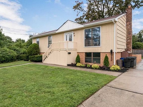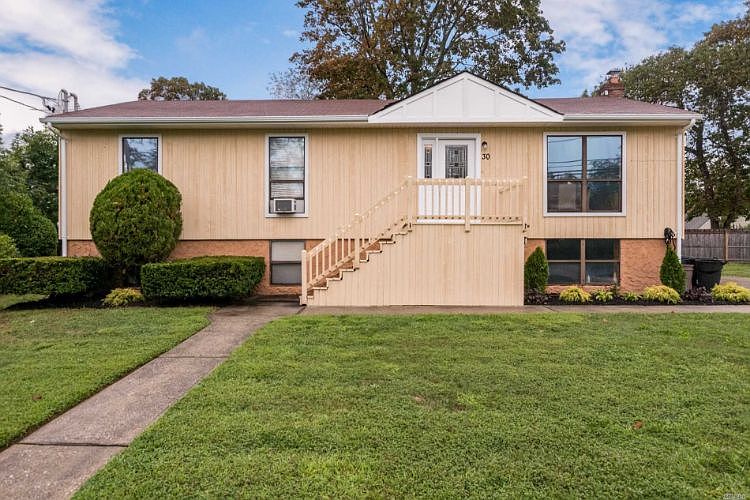 Over-sized High Ranch with a Huge Eat in kitchen to die for. Nice cathedral ceilings give the living room and dining room a grand, totally open and bright feel. Large entry way with a coat closet and 3 large bedrooms and Bath. On 1st floor you have 2 nice bedrooms, den with a Wet bar and "Room for Mom". Storage in attic and in Utility area with the Washer Dryer. Lots of high end finishes, clean and ready to go. Tax reduction of $1-$3, 000 expected.