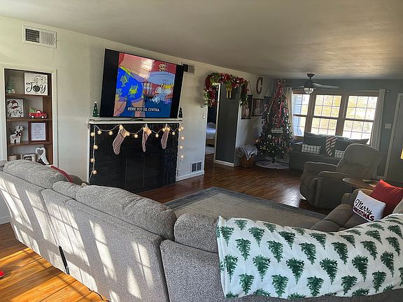 Open concept 2 bed 1 bath home. Large living room, & eat in kitchen. Large bedrooms with large closets. The home has newer roof & siding, brand new furnace & AC unit, newer double paned windows, remodeled bathroom. Real wood burning fireplace with new doors & vents. Fridge, stove, & dishwasher stay. Attached carport & large yard completely fenced in. Large back deck. Original hardwood floors in living room, bedrooms, & hallway. Please contact 573-300-1068