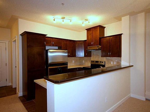 Click brochure link for more details. 1 Brdm + Den (bigger than other 1 Bdrms, Bldr. Size of 790 sqft) in Bldg 30 on sought-after TOP FLOOR! No neighbour on one side* (*i.e. MORE QUIET). Partial tree view from balcony. East facing (*not towards parking lot or street). Open floor plan, brown stained maple kitchen cabinets w/ raised eating bar in matching color, ceramic top stove, fridge w/chilled/filtered water dispenser, dishwasher, all in S.S. Spacious living room w/ large windows, stone faced gas fireplace, nice balcony. Nice bathroom w/ stand alone shower and big soaking tub. Good size bdrm w/ walk-in closet. Laundry closet w/ stacked Washer & Dryer. Enjoy the great outdoors at Griffith Woods Reserve. Easy access to DT, Mt Royal College, Westhills mall, Westside Rec. centre. Parking: 1 TITLED stall (underground, heated) very well located. Bldg#30 has Rec. room w/ billiard, and Gym room. Condo Fees: $375/mth. includes Heating, Water, Electricity, Underground parking, BBQ Gas, Garbage, Bldg maintenance, landscaping and snow removal. The Wedgewoods is a Pet Friendly Community.