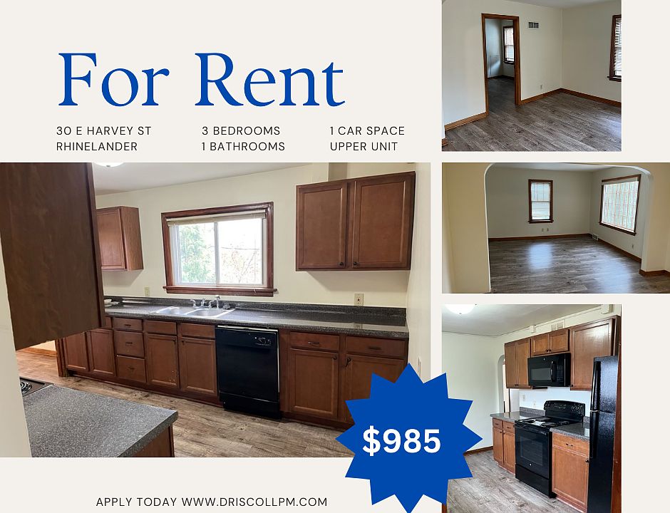 30 E Harvey | $985/M + $985 SD Upper Available December 10, 2024 3 Bedroom 1 Bath Tenant pays electric. Water and Sewer included in rent No Smoking No Animals To view this property, submit your Rental Application(s) (one for each person 18 or older). Applications can be submitted online. This listing is managed by Driscoll Property Management
