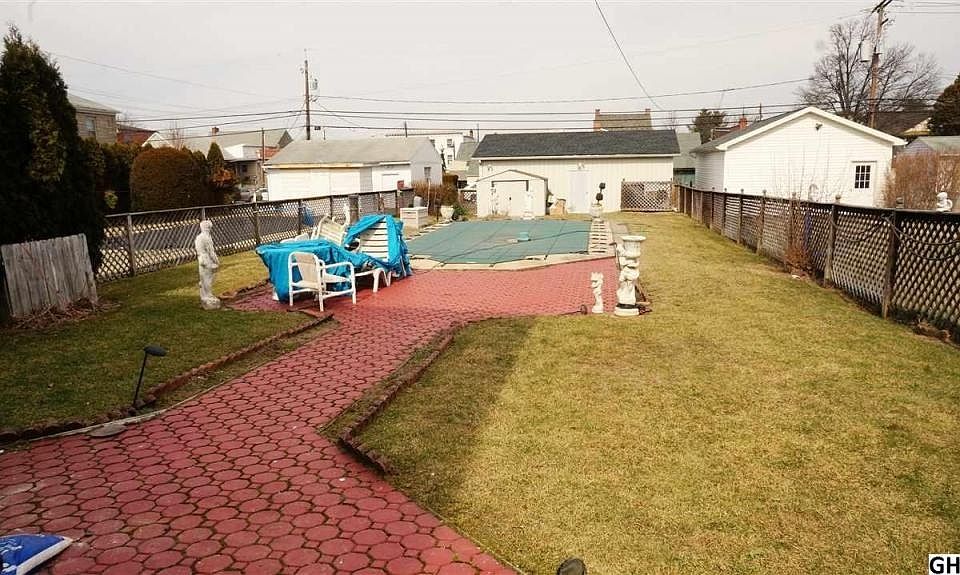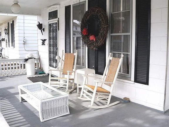 Wonderful 2 story, 4 bedroom home with 1 1/2 baths, lovely wrap around porch, high ceilings, large rooms & wood flooring throughout. 2 wood fireplaces: one in the kitchen & a large 20 year old, stone fireplace in the living room make for cozy times. Nice in ground pool 4 to 8 ft deep, approached by brick work & statuary if you want it. Newer 3 car garage plus off street parking for one car. Walk to schools, shopping and more. This home is a delight! Great for 203 K financing.