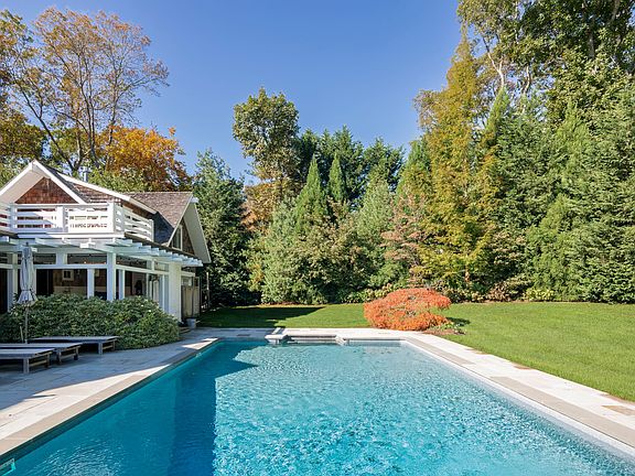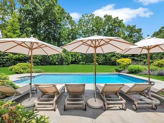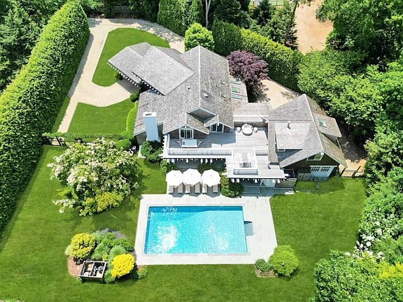 Welcome to 30 East Hollow Road, a resort-style East Hampton South luxury home located in the coveted Georgica enclave, moments from world-class ocean beaches and the restaurants and shops of East Hampton Village. Set on a private, gated acre of park-like grounds, this brand new designer renovation is the perfect blend of serenity, sophistication, and elevated Hamptons living. As you enter through the soaring foyer, the quiet luxury of the home is immediately felt, with impeccable design, natural light, and seamless flow creating a calm, inviting atmosphere. The main level offers exceptional entertaining spaces, including a spacious living and dining area with vaulted ceilings and a remote gas fireplace, a beautifully designed media room with a full surround sound system, and an expansive chef's kitchen with a built-in banquette and a fully outfitted butler's pantry. Two powder rooms and a large multi-purpose laundry room complete the first floor. The home features five spacious bedrooms, including a first-floor primary suite with a spa-like bathroom, while the second level offers two junior primary suites, along with a separate guest wing that includes two additional bedrooms, a shared bathroom, and its own private lounge. Every bedroom opens to the outdoors, with shaded decks and terraces that create a seamless indoor-outdoor lifestyle so synonymous with the Hamptons. The finished lower level enhances the resort feel with a fully equipped gym, a game room, and an additional media room with surround sound. Steps from the house, the outdoor spaces are designed for true Hamptons entertaining. A full outdoor kitchen-complete with a wood-burning grill, oven, and pizza oven-sits beside nearly 1,000 square feet of bluestone-covered patio space, ideal for intimate dinners or large al fresco gatherings. Just beyond the patio is the heated saltwater pool with a new heater, along with an enclosed outdoor shower and changing room. The beautifully landscaped grounds, mature plantings, and private gated driveway create a rare sense of peace and privacy in one of the most sought-after areas of East Hampton. This newly renovated residence is fully equipped with modern smart-home technology, including SONOS sound inside and out, smart lighting, and keyless entry. Perfectly positioned in the heart of Georgica, and offering the full resort experience within minutes of East Hampton Village and the ocean beaches, this property stands out as an exceptional opportunity for buyers seeking luxury real estate in East Hampton South with every amenity and detail already in place. A true turn-key sanctuary in one of the Hamptons' most prestigious locations.