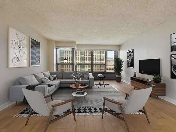 located on a high floor with breathtaking views of downtown. The carpets and the unit are professionally cleaned and the unit is available for move-in now. Excellent location, close to the Loop, Grand Red line, Trader Joe's, Jewel, Whole Foods, bus to Ogilvie & Union Station. Unbeatable location - only one block away from Michigan Ave. This place has a walk score of 100/100. It is very close to popular for the best bars, restaurants and nightlife. Building has an entire floor dedicated to entertainment including a swimming pool, full gym, sauna, hot tub, business center