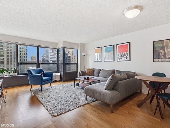 Unbeatable River North Location! This expansive one-bedroom offers the largest floor plan in the building and boasts stunning east-facing views of the city skyline and lake from the 39th floor! The updated kitchen features shaker-style cabinetry, granite countertops, and stainless steel appliances. Enjoy hardwood flooring throughout the main living area. Spacious bedroom with a ample of closet space! Located in a full-amenity building with a 24-hour doorperson, fitness center, outdoor pool and sundeck, theater room, community lounge, and coin laundry. Just steps from the Red Line, Magnificent Mile shopping, popular River North and Gold Coast restaurants, grocery stores, Starbucks, and more. Rental parking available through another owner.