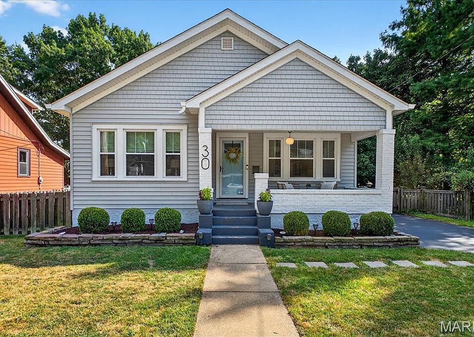 Welcome to 30 E. Jackson in the heart of Webster Groves - where timeless character meets thoughtful updates. This 3-bedroom, 1-bath home boasts curb appeal with new vinyl siding, cedar shake, soffits, gutters, downspouts & roof. Step onto the inviting covered front porch and into a warm interior featuring wood floors, fresh paint, extensive moldings & original doors that speak to the home's historic charm. Flexible 4-season room is perfect as a home office, playroom, or sitting area. Enjoy cooking in the updated eat-in kitchen, complete with butcher block counters, ss appliances, subway tile, updated cabinetry & built-in benches for a stylish, functional dining nook. Outside, relax or entertain on expansive deck overlooking nearly one fourth of an acre fenced yard. A carport & large shed add convenience and storage. The clean, open lower level offers potential for additional living space or storage.