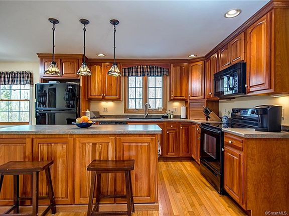Picturesque location for this well maintained New England Cape Cod home. Nothing to do but move right in and enjoy the privacy of the Thompson Hill location. Beautiful hardwood floors throughout. First floor features living room with fireplace, formal dining room with french doors, mudroom, and full bath. Also on the first floor is an office or 4th bedroom. Second floor offers 3 bedrooms and full bath. Home features a nicely appointed cherry kitchen open to a cathedral family room (14x27 with a pellet stove and french doors overlooking private open backyard. What truly makes this home a gem is the beautiful flat .96 acre yard featuring a fabulous barn with covered porch, loft, generated hookup for house and electric. All located near 395 and on a dead end road with stone wall entrance.