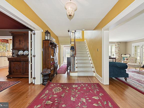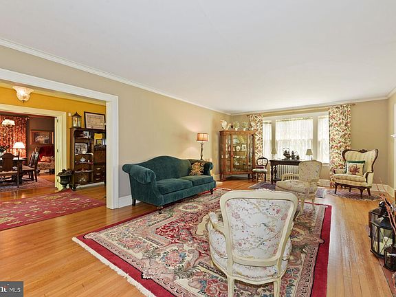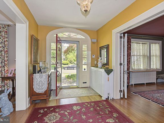 Don't miss this classic center hall Colonial on one of Moorestown's most beautiful streets! Situated on a 1/2 acre corner lot just a few blocks from Main St, this gem offers a traditional yet open floor plan which easily flows from one room to another. Very spacious rooms with wood floors (under carpet on parts of 2nd floor) and lots of character throughout. Beautiful entry foyer is flanked by gracious Dining Room and Living Room with wood burning FP, and the Sunporch with sliding door leads to a large paver patio. Kitchen was renovated by Canton Custom Homes. There is a powder room and convenient mudroom off the kitchen which accesses back yard and driveway. 2nd floor has 4 generous bedrooms with hall bath - great potential for a nice primary suite by combining two rooms. The walkup 3rd floor is ready for your ideas - currently used for storage, but has also been used as bedroom space. Full basement has walkout exit to back yard, which is very private with mature landscaping. Large detached 3-bay garage, gas heat, and central air.