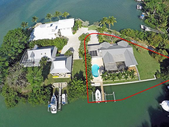 Prime half acre lot on a private peninsula with 165 ft. of Bahama blue water frontage. Redesigned Key West style home with water views from every room. Boat dock with two lifts that puts you on the ocean in 10 minutes. Great location for future new construction! Home is also available for rent $6,500/month.
