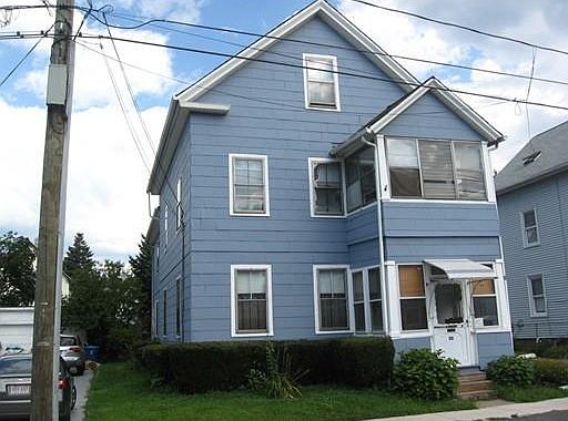 Opportunity knocks for the savvy Investor or Owner Occupant in this spacious two family home located in a convenient location near shopping, public transportation, schools and easy highway access. Separate Utilities, partially fenced in yard, non through street, slate roof, newer shed. First floor offers large eat-in kitchen with stove, dishwasher, refrigerator, pantry, 2 bedrooms, dining room with built ins, spacious living room with wood stove and beamed ceiling, enclosed front porch. Second floor offers large eat-in kitchen with gas stove, pantry, 3 bedrooms, 2 are on the 3rd floor with front and back stairways. The home is priced well below assessed value and is priced to sell as-is.
