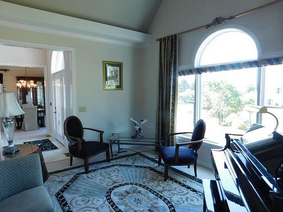Royalty is what you will feel like when you step inside this 3,325 sq. ft. sumptuous home. The 2-story foyer and great room with 18 foot ceilings, gas fireplace and wall of windows provides a grand living space. French doors lead to the composite deck. The eat-in kitchen offers custom cabinetry including a built-in desk, a center island with built-in wine cooler, stainless steel 4 burner gas stove, marble, and under cabinet lighting. Spacious main level master suite features tray ceilings and an en-suite with built-in makeup vanity, tiled shower, and jetted tub. The open hallway overlooks the great room and leads you to the bonus room, ideal for home office. Additional custom features include porcelain tile flooring, custom drapes, built-in speakers, and whole house vacuum. Add even more value and space by finishing the full basement, ready for completion. The nice landscaping boasts loads of curb appeal!