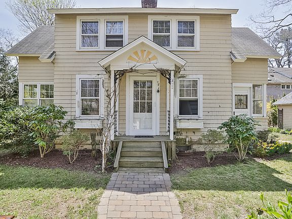 The Best of All Worlds! Charm AND Character AND Close Proximity to (in between actually) Both Madison Center AND East Wharf Town Beach, not to mention at an attractive manageable price point especially for where this home is located. Set back from the street with a shared driveway, it's rather private. There is a 3 bedroom septic system in place but the 4 rooms upstairs each have a closet and if more year round living space is desired, there are 2 enclosed porches on opposite sides, one off the Kitchen & the other off of the Living Room that could easily add another 224 sq ft. Outside you have a private south facing deck off the family room slider, a brick patio and even a hot & cold outside shower, perfect from coming up from the beach or back from a run. Inside there are hardwood floors up & down, a cozy fireplace in the living room while both baths have been improved upon including tile floors. Basement is full, with a newer (2010) oil furnace. The separate one car garage is a nice plus for this smaller beach home. This is all about location; less than 1/3 mile to Post Office & Library, less than 1/2 mile to Beach, less than 1 mile to Railroad Station!