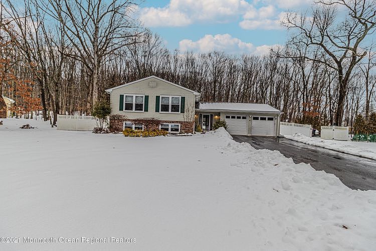 Come and see this very well maintained home in Freehold Township. Updates include: New roof and gutters( 2020), Furnace, hot water heater and central a c (2 years old), Master bath 2016, main bath updated 2021, hard wood flooring throughout home, crown molding and all doors changed in last 3 years, New french drain system 2020. Castle windows from 2008 with lifetime warranty, high hats throughout home, and bonus room on 1st level. All big ticket items done. Home is located on a tree lined street with plenty of property. In ground pool with 4 year old liner, pool pump and cover replaced in 2020. Nothing left to do.