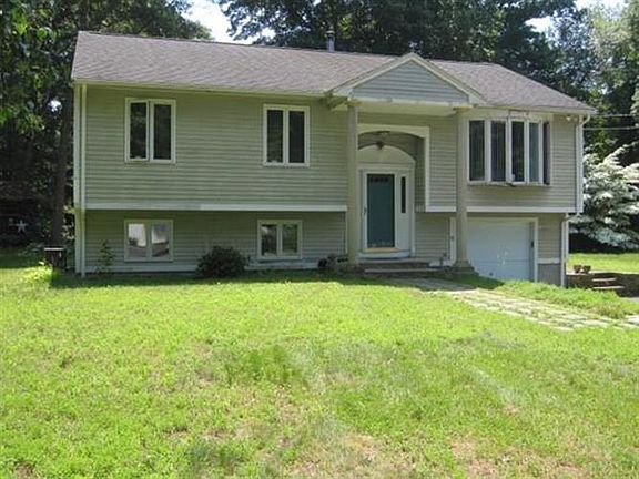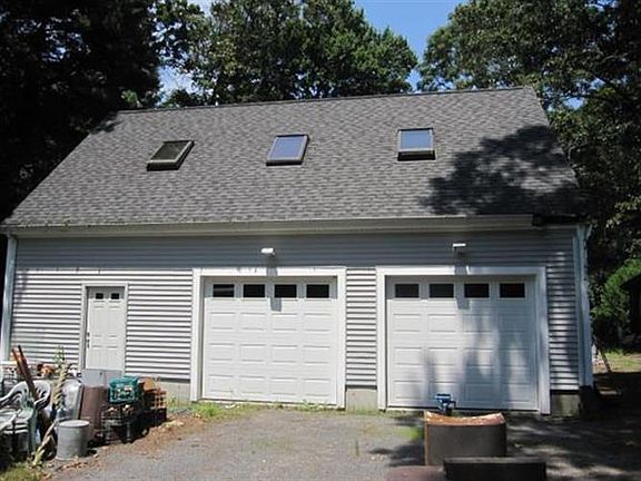 Very private, spacious, secluded property-last lot on dead end street-with several outbuildings. Oversized split w finished lower level family room, (new w w carpet), laundry and full ceramic tile floor bath. Living room with brand new picture window. Spacious kitchen with bay window and 3 panel patio door to a large remodeled deck. Master bedroom has separate entrance to a full bath w skylight Amazing, separate, 38 x 24-3 car garage workshop with separate electric and enormous full size 2nd floor, 2 sheds and another outbuilding. Central air. Walking distance, less than 1 mile, to the new entrance 'Dever Drive'? of the Myles Standish Ind. Park and to the Lake Sabbatia boat ramp, 1 mile to Watson Pond Recreation area and 5 min drive to Rte. 495, Exit 9. Chamberlain, Friedman School District.