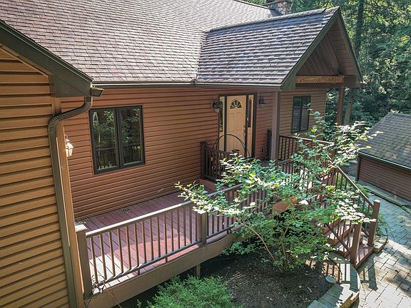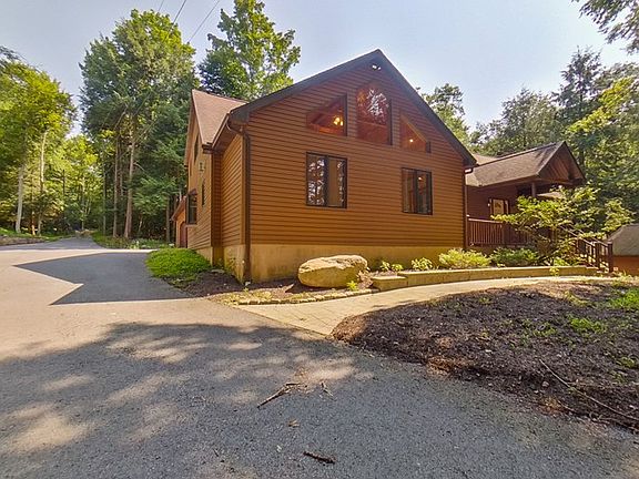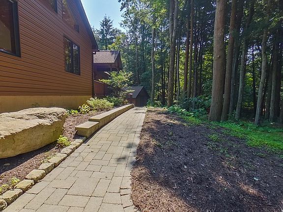 30 Effie Drive is one half mile outside the borough Of Eagles Mere off of Laporte Avenue and consists of four structures. The main house has a great room with two large windows looking out over the patio and the Mackey Run creek. There is a kitchen with a gas stove, two sinks, one with a hot water generator and an island suitable for stools. There are many cabinets and two pantries along with spaces for dining and a bathroom. There is a sliding glass door leading to a deck with a Weber grill connection to four 125 gallon propane tanks. Also on the first floor is a large area with a gas fireplace and a bedroom with bath that could be used as an in-law suite with a sliding glass door leading to a porch.