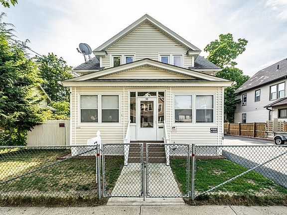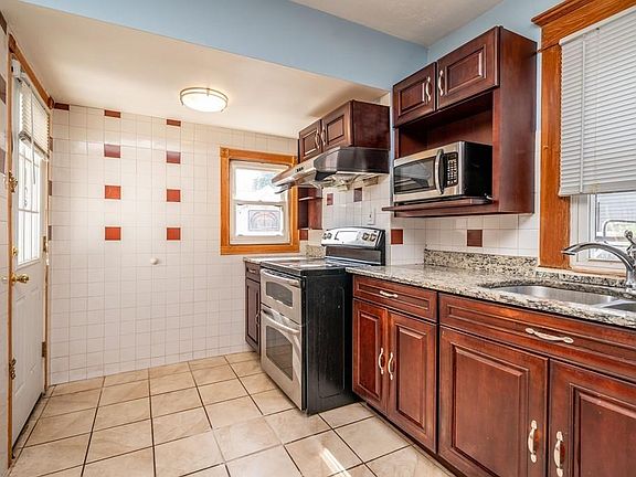 Newer vinyl siding and roof in recent years ( APO). Hardwood flooring and three generous bedroom sizes. Remodeled kitchen with granite counter tops and ss appliances, separate eat in dining area . Finished basement with two separate carved out rooms with tile floors, laundry in basement with washer and dryer included. Fenced in yard with storage sheds and an additional garden area and dog house area.