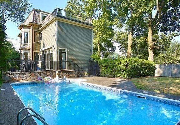 Exceptional Second Empire Mansard Victorian situated in Sumner Hill Historic District. Gracious living in 4+BR, 3.5 brand new baths, and enviable outdoor spaces. The eat-in-kitchen is delightful, with new quartz counters, custom millwork, farmers sink, SubZero fridge, and JennAir wall ovens. French doors open from the kitchen to the bluestone loggia, overlooking the in-ground pool and mature gardens, an entertainer’s delight. The full floor primary suite occupies the entire top floor and a walk-out terrace providing seasonal views to downtown Boston. Sumptuous primary bath retreat with double vanities, soaking tub, and walk-in shower. Luxurious service kitchen, private office, and laundry located on this level as well. There are four wood burning fireplaces, and a home theater featuring a drop down movie screen and projector. Central A/C, two zone gas heat, radiant heating. Au pair suite, playroom, and wood shop utility room in finished basement not included in square footage