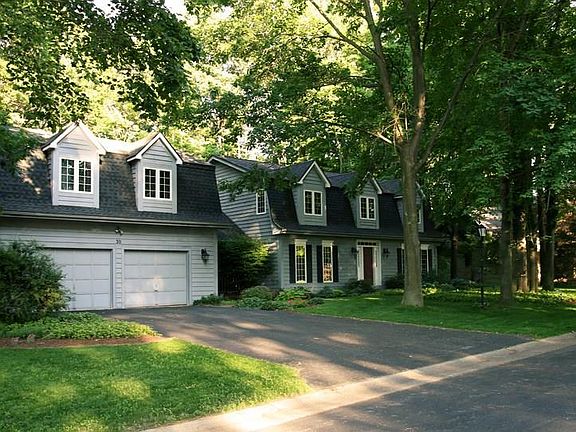 English Woods is a exclusive neighborhood accessed by a private road. This is an impressive 2,800+ sqft. cedar sided Dutch Colonial set on a woodland lot measuring nearly an acre! Grand foyer welcomes guests w open arms. Dining room is built to serve very large gatherings around the table. Massive kitchen w spectacular forest views! Step down into a large family room w brick wood burning frplc. Four season sun rm features cathedral ceiling, door to a deck & SEVEN tall windows. Master bedroom suite w generous sectioned full bath. Closets the size of bedrooms! 2.5 car attached garage has a massive 500+ sqft unfinished 2nd story loft area you might develop into a fabulous rec room or art studio or home office with a separate entrance. Roof, furnace 2013. Window less than 10 yrs. Meticulous!