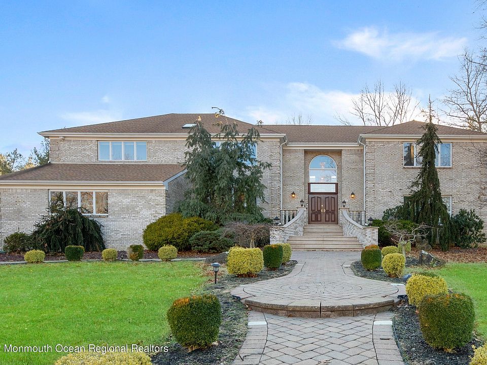 A REWARDING ESCAPE PEACEFULLY SITUATED: Luxurious and expansive, this 6-bedroom, 6.5-bathroom home of 5,416 square feet rests on a corner lot of .93 acres on a peaceful cul-de-sac in the Triangle Estates neighborhood of Morganville. Granite floor center-hall entry with cathedral ceiling and a suspended ornate, glistening chandelier casting white reflections on the walls. Richly-appointed spaces include large gathering areas. Enjoy the Open Floor Plan with a Vaulted Ceiling, sky lights, and fireplace Great Room, Sunken living room with French doors to an office/library. The Beautiful, bright, professional-grade newer Kitchen on the main floor Is 'The Heart Of The Home' - Complete with Large Customized Granite Island, Stainless Steel Appliances, and a Sub-Zero refrigerator. Spectacular dining room, Laundry Room, Guest-Bedroom and fully-updated Guest-Bathroom - ALL this on the main floor. Step up to the high open ceiling second floor from the center hall curved staircase to an oversized master bedroom suite with a very large walk-in closet, a soaking Jacuzzi tub, steam shower, and double-sink master bath. A study/game/recreation area, plus four more large bedrooms and 3 full baths. The fully-finished basement has over 2,000 square feet of living space. It includes a separate room used for a gym and/or storage, newer kitchen with granite counters, recreation area once used as a home theater, a full bathroom, and direct entry to the 3-car garage. The tree lined private backyard includes a large 1 level Trex deck with verdant surroundings. Home has been pristinely maintained. Timberline roof replaced in 2017. Centrally located, it is a commuter's delight with convenient access to Route 18 and Route 9, other major highways, and public transportation to NYC. Schedule an appointment today! This one of a kind 'GEM' will not last!