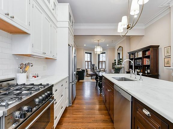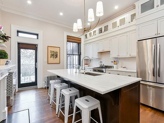 Dramatic, bi-level town-home in coveted Sumner Hill location. High 1st floor & garden level South End style brick row house professionally renovated by local interior designer. Corner unit, flooded with light, abutting open green space / SW Corridor park. Soaring 11' ceilings, chandeliers, open floor plan between kitchen/lr/dr, fireplace & marble mantles, many historic details. Loads of thoughtful custom storage & closets. Bright high-end kitchen with Bertazzoni gas range, floor-to-ceiling cabinetry, marble counters, delightful & unique fixtures. Full bath on each level. Downstairs experience high ceilings, two large beds, master w/ 12' custom closet & plantation shutters, & office nook with window overlooking the park. Private deck & patio ideal for entertaining, plus shared fenced yard & raised beds . Driveway parking, in unit laundry, plentiful basement storage. Amazing location mins to Green st. T, Centre St. Arboretum, or Pond. Please view Video tour linked here as blue V icon