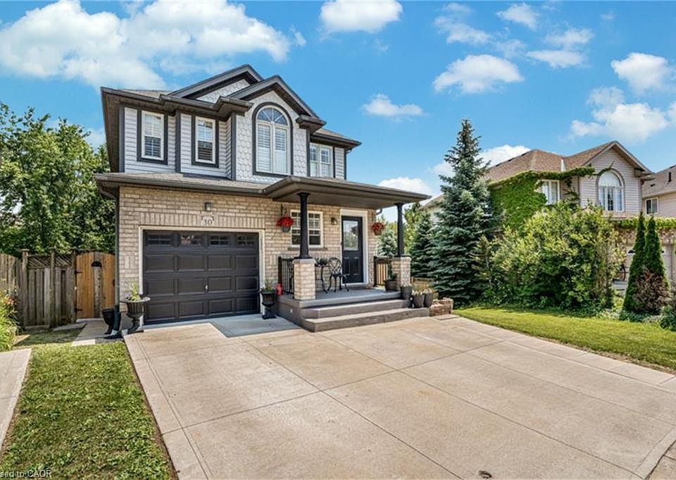 Welcome to 30 Everglade Crescent – A Rare Gem in the Heart of Williamsburg, Kitchener. This exceptional 2-storey home sits on a premium pie-shaped lot that backs onto a serene greenbelt with a tranquil water feature offering stunning views & added privacy. With impressive curb appeal, lush landscaping & parking for up to 4 vehicles (3 in the driveway (2022), 1 in the garage), this home is as functional as it is beautiful. Step inside this carpet-free home, with carpet just on stairs, The entire house features luxury flooring installed in 2022, complemented by California shutters, modern light fixtures & a fresh coat of paint. The open-concept layout is ideal for everyday living, with a spacious living & dining area flowing seamlessly into the upgraded kitchen featuring granite countertops, SS Appliances, a chic backsplash & a central island. Upstairs, the second level offers a generous primary bedroom retreat complete with a walk-in closet & a 4pc ensuite. 2 additional bedrooms provide ample space, each with beautiful views of the surrounding green space & share access to a stylishly renovated 4pc main bathroom featuring quartz countertops. Downstairs is fully finished basement, includes a spacious Rec Room, 3pc bath & a bonus 3-season room. The updated laundry area & modern staircase add further convenience. With a separate side entrance via a poured concrete stairway, the lower level provides excellent potential as a rental unit or mortgage helper. Step outside to enjoy your very own backyard oasis. The raised deck overlooks peaceful green space, making it the perfect setting for hosting summer BBQs, outdoor dining or simply relaxing evenings or weekend gatherings. The fully fenced backyard provides a safe & private environment. With Brand new AC & Furnace (2025) & Conveniently located just minutes from HWY 7/8, close proximity to shopping centres, public transportation & top-rated schools, This is a home you don’t want to miss, Book your private showing!