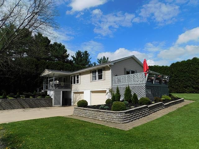 Come home to a private setting just minutes from town. This property is great for entertaining family and friends or enjoying some quiet time. The open concept living area leads to a large deck that overlooks 1.5 acres and a small creek. The newer hardwood floors, central air and other updates add to its character and comfort. The master bedroom with full bath is a retreat at day's end. The two secondary bedrooms, with adjacent full bath, are ready for children, guests, or use as an office, man cave or craft room. The basement includes a nice family/rec room with fireplace, laundry, and double garage. Don't wait to tour this move-in ready ranch home!