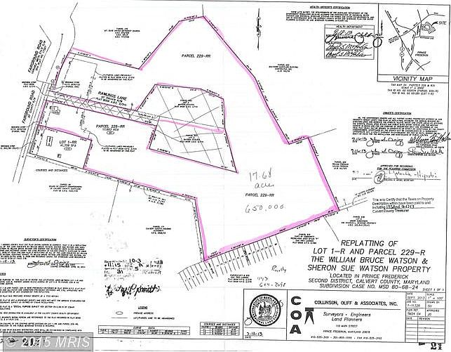 18.639 acre in Prince Frederick Town Center. Sale consists of 30 Fairground Rd and 110 Fairground Rd. High traffic area between county Park N Ride, church, across from Calvert High. Potential for many uses, residential, school, church etc! Additional properties may also be available for purchase. Developers/Investors this is an opportunity with excellent pricing and great possibilities.