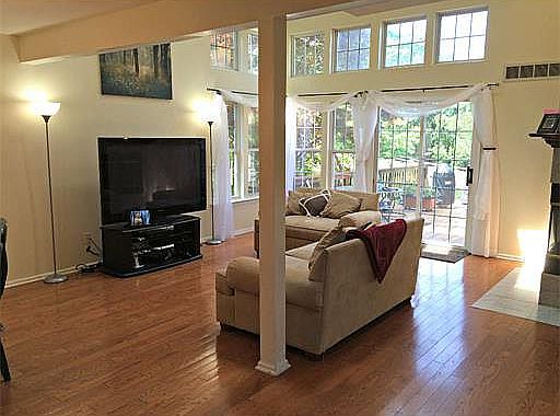 Nestled on the 6th hole and 7th tee on a premium lot of the Palmer golf course in The Greens, this beautiful single family home features an updated eat-in kitchen with granite counters, ceramic tile floors, and an amazing smart refrigerator. The main living area and master are finished with hard wood floors, while the dining room is perfect for entertaining, and the living room boasts a gas fireplace and sliders to the amazing deck with an amazing view. The first floor master bedroom has a slider that opens to the deck, with an elegant master bathroom with a whirlpool tub and separate shower, and 2 large walk-in closets and linen closet. The huge upstairs bedroom is a second, private master bedroom with full bath. Great for separate guest quarters when entertaining. This lovely home boasts a fantastic first floor office with double door entry and wet bar, a big two-car garage, a full basement, and amenities galore; including clubhouse, gym, and pool membership.