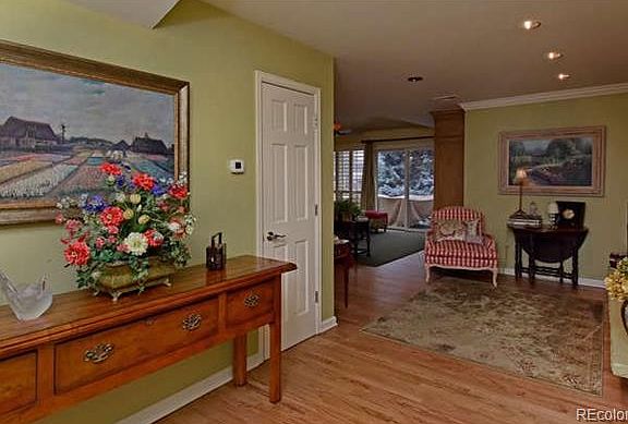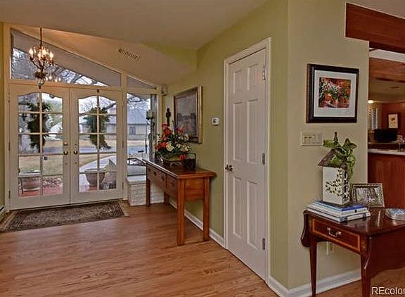 Impeccable Ranch Home on 15th Fairway of Columbine Country Club. 5bed, 4bath, finished basement and a kitchen made for entertaining. Spectacular open kitchen with cherry cabinets, granite countertops, travertine backsplash, large entertaining bar with copper sink and plenty of storage. The oversized dining room boasts large windows a cozy fireplace and custom storage closet. Master suite with french doors to patio with views of golf course. Hardwood floors throughout main living area finish off the warm feeling throughout the home. Newer roof and newer boiler Updated baths with no detail missed.