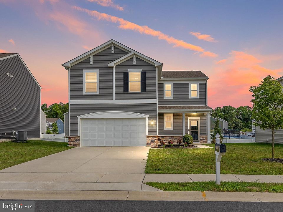 Discover modern living at its finest with this move-in ready 4-bed, 2.5-bath home in the sought-after Point Landing neighborhood of Magnolia, Delaware! Built in 2020, this 1,981 sq ft gem sits on a .17-acre lot and boasts all the benefits of a nearly new home, with no upgrades needed for years to come. The home’s exterior features sleek gray siding complemented by a stylish stone facade. A spacious two-car garage and a driveway that can accommodate four more cars ensure ample parking for family and guests. Step inside to an inviting open floor plan on the first floor. To the left, you'll find a convenient powder room before ascending the stairs. The living room, dining room, and kitchen flow seamlessly, creating an ideal space for entertaining and everyday living. The kitchen is a chef’s delight with dark cabinets, granite countertops, and a large island providing plenty of storage and counter space. An impressive walk-in butler’s pantry offers even more storage options. Access to the garage is conveniently located next to the kitchen, and sliding glass doors by the dining room lead to the backyard. Upstairs, you'll discover four generously sized bedrooms. The guest bathroom features a double vanity and a shower-tub combination, beautifully decorated for comfort and style. The primary bedroom is a true retreat with an ensuite bathroom, a stall shower, and a huge walk-in closet. The second floor also houses the laundry room and utility room, adding to the home's convenience. Decorated with a keen eye for style and meticulously maintained, this home is truly move-in ready. Located close to Dover, Delaware, it offers easy access to amenities, shops, and Route 1, making commutes north or south a breeze. Don’t miss your chance to own this modern, beautifully appointed home in a fantastic location.