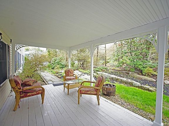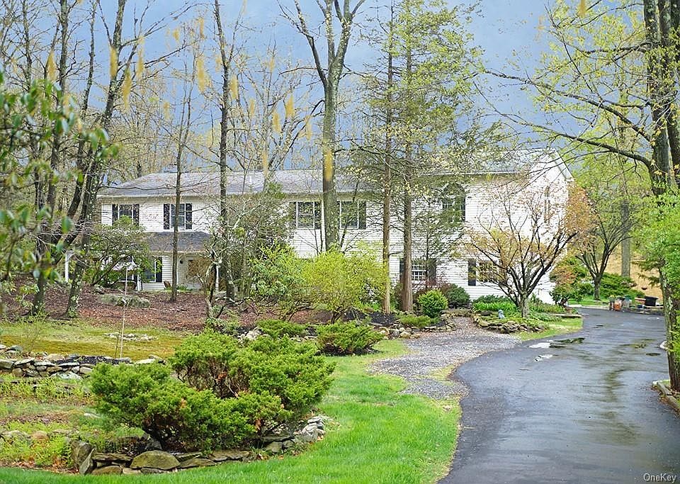 Set back from the road for privacy, this lushly landscaped home was custom built by the original owners with style and flair. Soaring ceilings and cut stone fireplace w/Vermont insert in the living room set the tone for this contemporary colonial. Updated granite and cherry kitchen, walk in pantry, three full updated baths and a huge primary suite with a walk in closet with dressing room, sitting room and a gorgeous light filled bonus room that lends itself tp endless possibilities with a walk in closet and balcony. Just over the Putnam border and minutes to the TSP and I-84, this home is a commuter's dream. Almost three acres of lovingly maintained property with a front porch, two newer decks and a newer hot tub perfect for enjoying the parklike setting. LR/DR wood floors are newly refinished. A bedroom and full bath on the main floor enhance this open floor plan. You will appreciate the beautiful bonus/zoom room off the primary bedroom. Lovely neighborhood with privacy and a bike riding cul-de-sac.